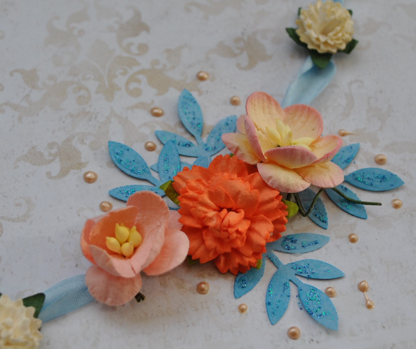 I added leaves to the flower clusters using a Martha Stewart punch and some left over 'Wonders' paper.